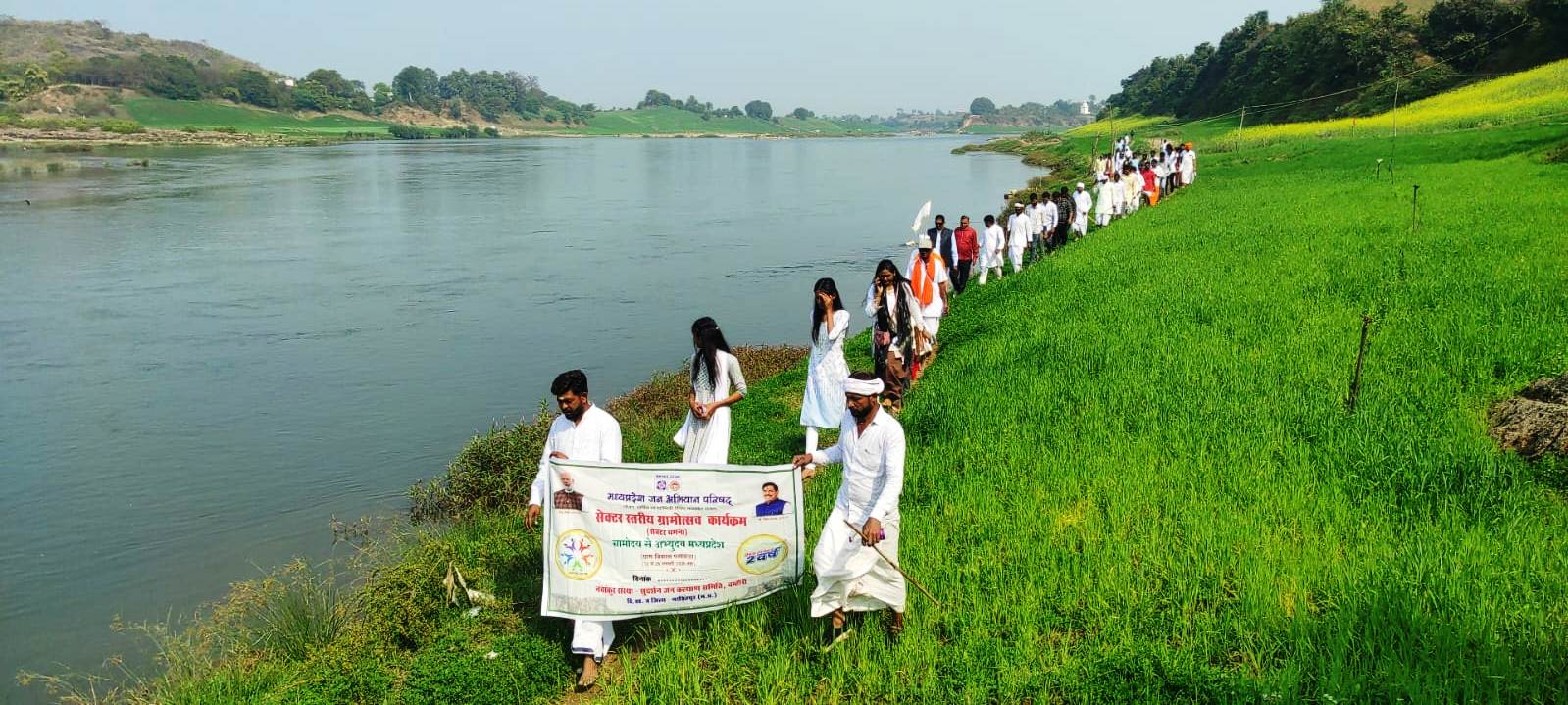 सहभागिता से सांईखेड़ा उमर सेठान घाट नदी में बनाया 300 बोरी बंधान