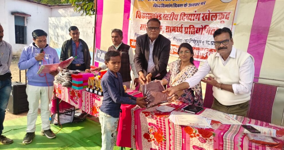 दिव्यांग दिवस के अवसर पर सांईखेड़ा के जनपद शिक्षा केंद्र के परिसर में विकासखंड स्तरीय दिव्यांग छात्र- छात्राओं की खेलकूद, सांस्कृतिक एवं सामर्थ्य प्रतियोगिता का आयोजन किया गया। इस प्रतियोगिता के अंतर्गत विकासखंड साईंखेड़ा के विभिन्न जन शिक्षा केंद्रों में अध्ययनरत दिव्यांग छात्र- छात्राओं ने उत्साहपूर्वक अपनी सहभागिता की। प्रतियोगिता में दौड़, चम्मच दौड़, कुर्सी दौड़, रंगोली, चित्रकला आदि से संबंधित गतिविधियां आयोजित की गई। सहायक संचालक सुश्री सीमा डोंगरे ने कहा कि इस आयोजन का प्रमुख उद्देश्य दिव्यांग बच्चों के अंदर छुपी प्रतिभा का प्रदर्शन करवाना है। बीआरसी श्री संदीप स्थापक ने कहा कि प्रतिवर्ष विश्व दिव्यांग दिवस के अवसर पर इन स्पर्धाओं का आयोजन किया जाता है। […]