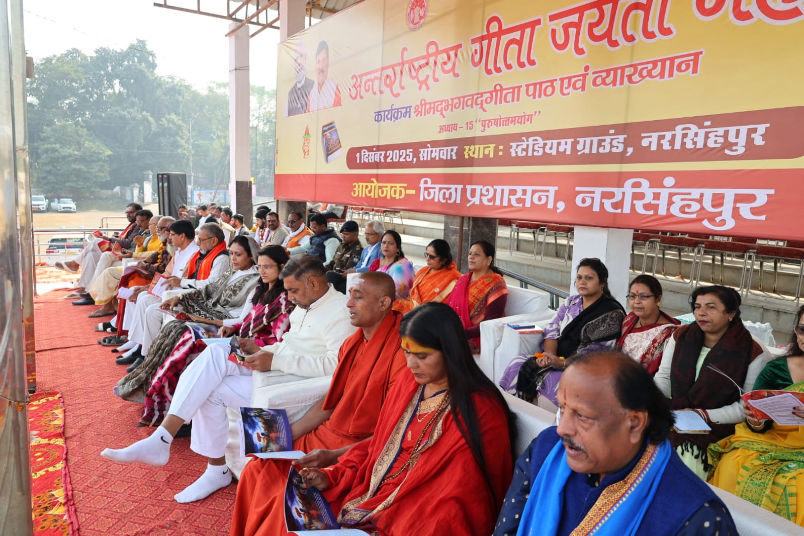 #मध्यप्रदेश अंतर्राष्ट्रीय गीता जयंती के अवसर पर नरसिंहपुर में आयोजित हुआ कार्यक्रम कार्यक्रम में श्रीमद्भगवत गीता के 15 वें अध्याय का हुआ पाठ अंतर्राष्ट्रीय गीता जयंती के अवसर पर एक दिसम्बर 2025 Shabd Power / 2 months Comment (0) (0)